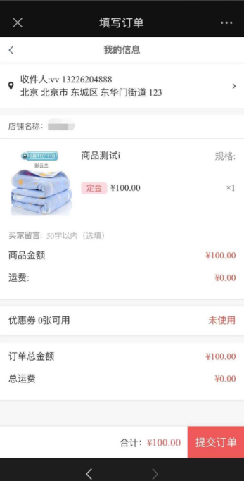 4. 定金订单页面: