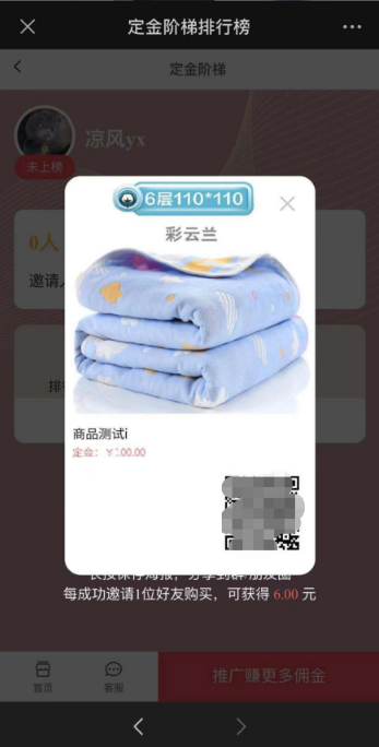 (2)用户可查看到通过该活动下定金的订单获取的一级分销奖金的由多到少排名的前100 位用户,初始显示6位,点击更多显示全部,最多100位