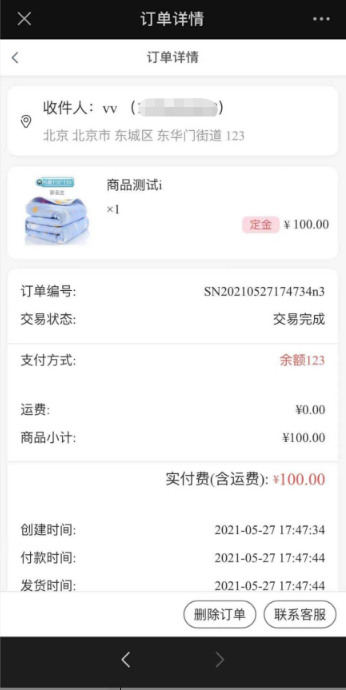 (3)尾款订单的商品后台查看订单商品是活动绑定商品,但前台订单列表页及详情页均把 商品名替换显示为活动的名称;