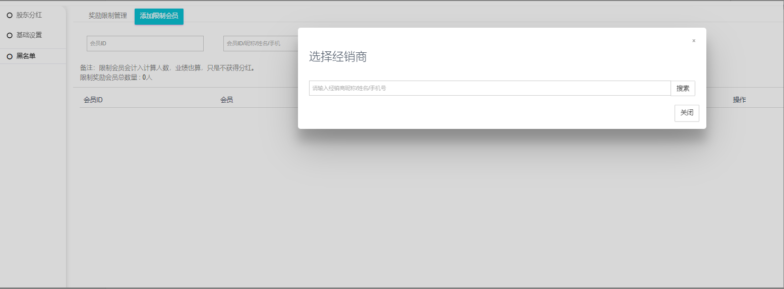 可以添加限制会员,限制会员会计入计算人数,业绩也算,只是不获得分红