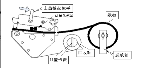 1. 先将纸卷装上发放轴;