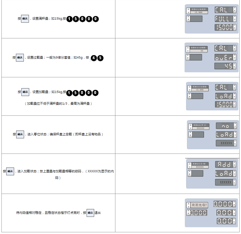 注:如有实际需要,如在秤盘上固定加一个轻质托盘,也可手动置零使电子秤恢复零位;手动置零范围一般为不超过满秤量的4%。