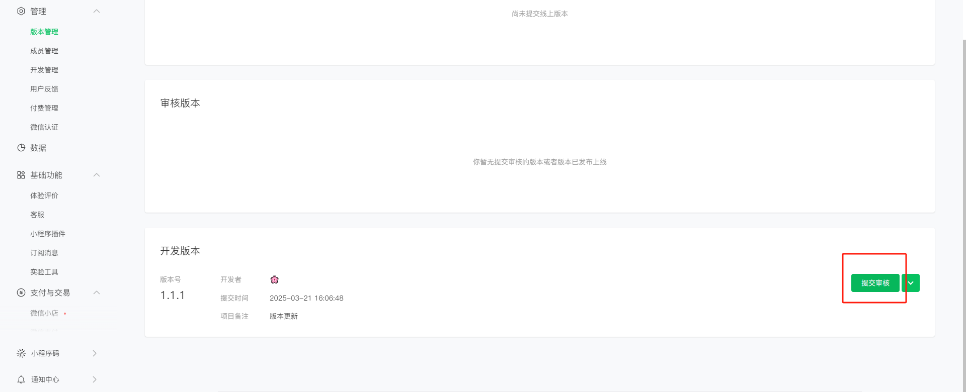 7、小程序后台-版本管理-提交刚发布的开发版本为体验版