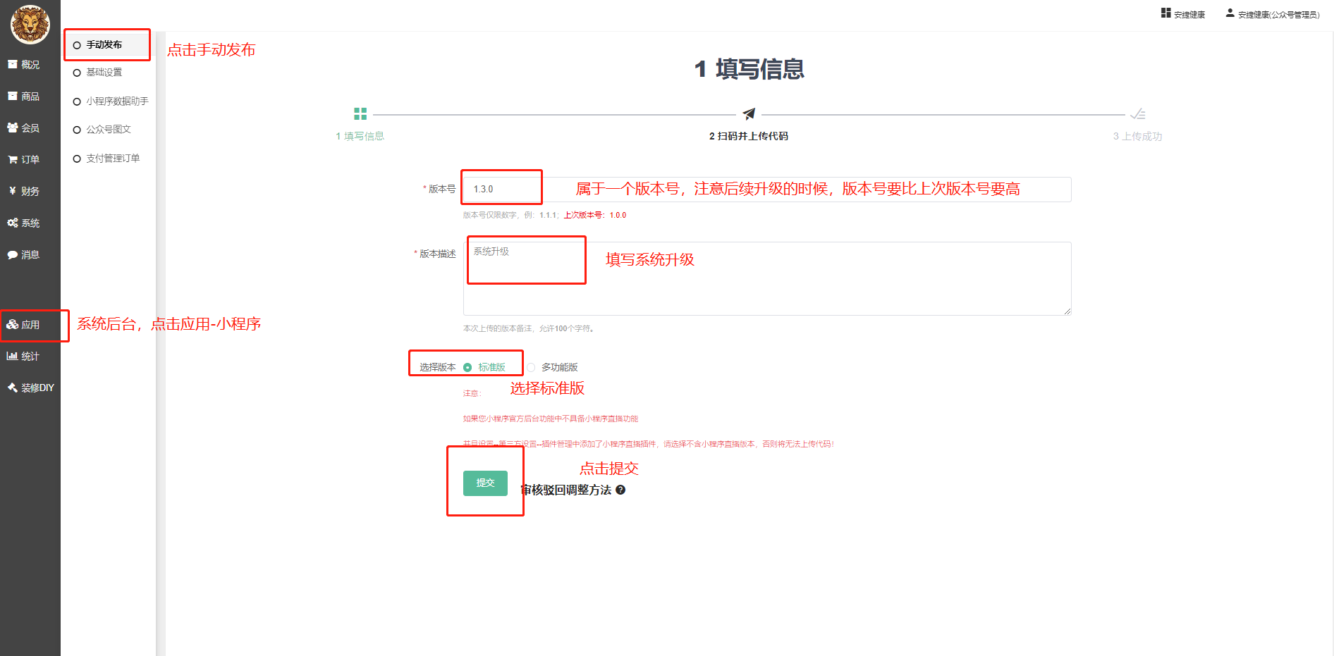 5:系统后台-应用-小程序-手动发布