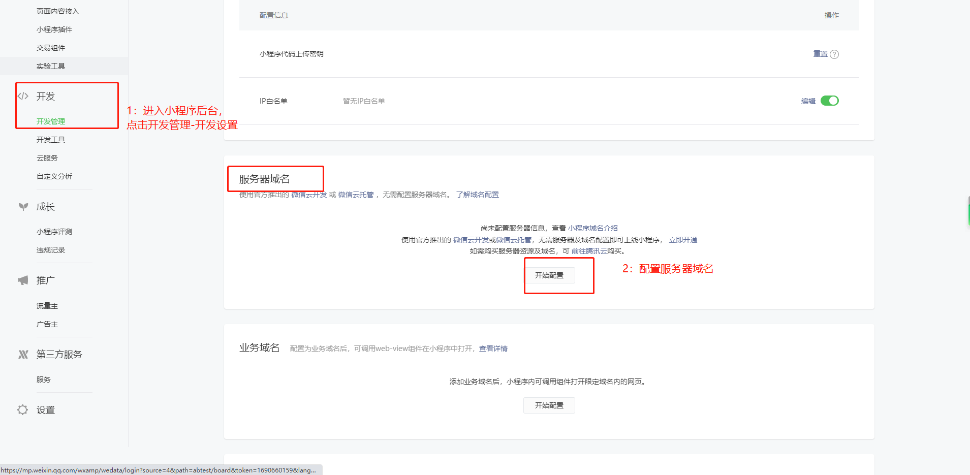 小程序后台-开发管理-开发设置-配置服务器域名