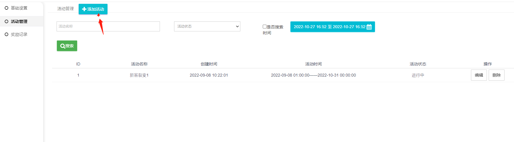 1, 记录每个活动的信息,可以编辑正在进行的活动(编辑保存会将所有奖励重置,活动开始后请勿随意编辑)