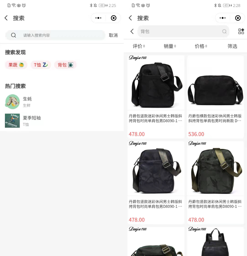 (一)页面设置,商品搜索页面增加搜索发现和热门搜索功能